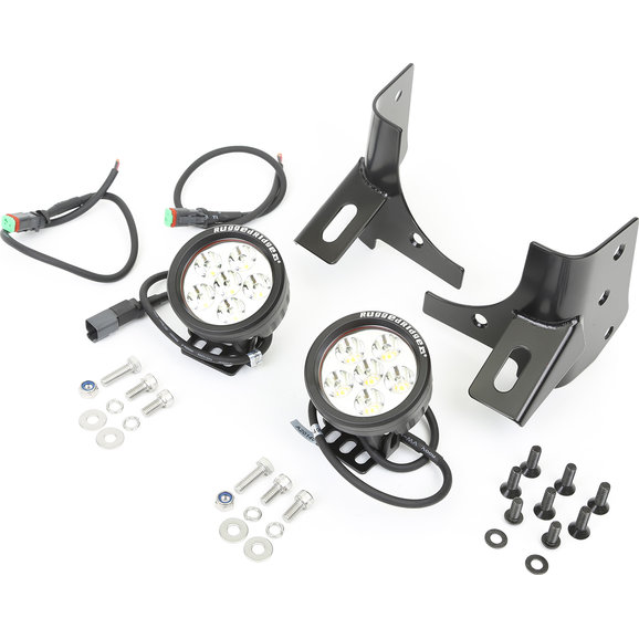 Looking for an alternate way to mount your lights during your off-roading adventures? This Rugged Ridge windshield bracket LED light kit allows you to quickly and easily mount your LED lights to your factory windshield hinges, creating two great spots for off-road lighting. This easy to install kit includes two black powder coated windshield mounting brackets and two 3.5-inch round LED lights for optimal illumination on the trails. No drilling required.