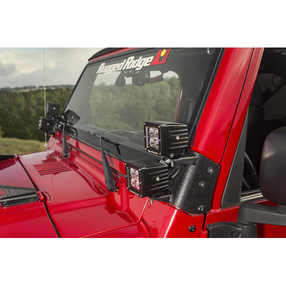 Rugged Ridge 11232.38 A-Pillar Light Mount Brackets Kit with 3" Square LED Lights for 97-06 Jeep Wrangler TJ & Unlimited