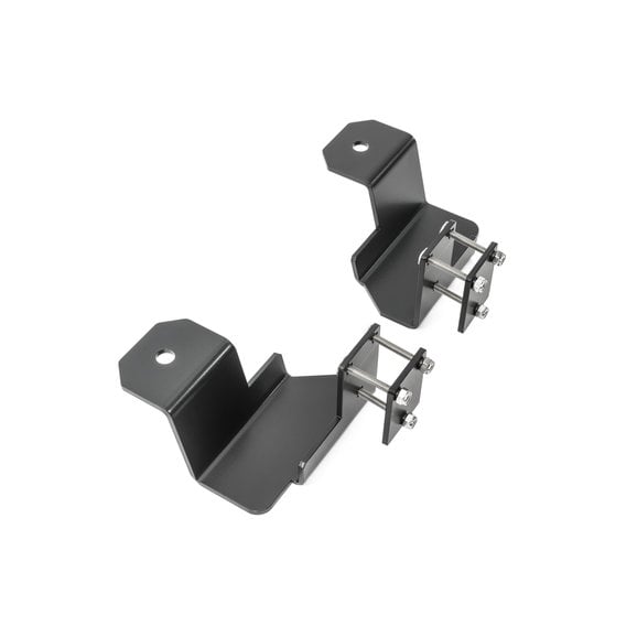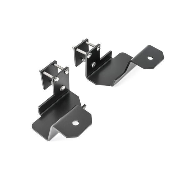 Enhance nighttime driving and the looks of your vehicle with our custom light mount brackets and your favorite style auxiliary lamps. Simple installation with no drilling or modifications required. Brackets clamp securely behind the grille and provide 18 inch center to center lamp spacing and clearance for virtually any size and brand of lights. Constructed from 3/16" plate steel with a satin black powder coat finish. Kits include two light mount brackets, mounting hardware and detailed instructions. Auxiliary lamps sold separately. KC Rally 800 Lights sold separately.