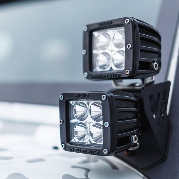 Off Camber Fabrications new A-Pillar light brackets are designed to mount two LED lights. Laser cut and formed from heavy gauge material insure a perfect fit every time. Brackets are powder coated black. The brackets mount using factory holes and fit industry standard LED cube lights. Two mounting brackets are included.
