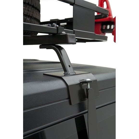 patent pending steel bracketry requires no-drilling ant the easy on/off adapters make installation and removal a breeze. The lightweight ¾" aluminum tube construction is both strong and durable to hold up to 150 lbs. of cargo. Rack measures 50"wide x 60" long and 5" deep and fits both 2 & 4 door JK with factory hardtop models. Spare tire, Hi-Lift Jack, Axe & Shovel Brackets and Light mounts are sold separately.