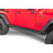 The dual purpose Rocker Walk Side Steps provide trail-rated rocker guard protection and a side step running board. The rigid steel construction, wards off unforgiving rocks, limbs and trail embankments. The dimple die traction surfaces provide secure footing when accessing any overhead rack. Rocker Walks attach using heavy duty custom brackets and bolt directly to the JK frame with no drilling required. Features a marine-grade black powder coat finish that is formulated to resist corrosion, abrasion, fading and dulling. Comes with a limited lifetime warranty.