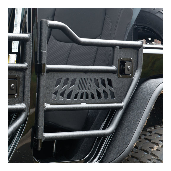 The Aries Automotive Rear Tube Doors give you a taste of freedom with every drive. Aries uses an all T6 hardened aluminum frame that is TIG welded together for a rugged and precise fit. Their heavy duty black textured powdercoat is designed to withstand anything that comes its way. This includes scrapes, scratches, bumps, and even salt spray.
