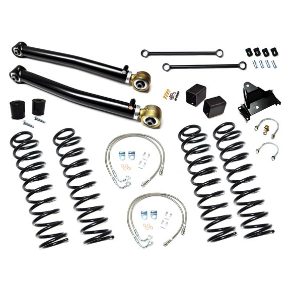- Included Parts: Bump Stops, Coil Springs, Control Arm Brackets, Extended Brake Lines, Front Lower Control Arms, Front Track Bar, Front Upper Control Arms, Hardware or Brake Line Extensions, Bump Stop Extensions, Bump Stops, Coil Springs, Extended Brake Lines, Front Lower Control Arms, Front Upper Control Arms, Hardware, Rear Lower Control Arms, Rear Track Bar Bracket, Rear Upper Control Arms, Sway Bar Endlinks or Brake Line Extensions, Bump Stop Extensions, Bump Stops, Coil Springs, Extended Brake Lines, Front Lower Control Arms, Hardware, Rear Track Bar Bracket, Sway Bar Endlinks