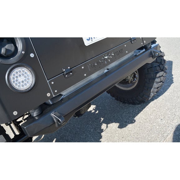 The Poison Spyder Customs BFH II rear bumper is designed for those hardcore four-wheelers who value strength, simplicity and function. This bumper was literally "Built For the Hammers" designed with light weight, toughness and performance in mind. It is basically a "frame cap" style bumper, hugging the rear end of the Jeep's frame and crossmember to provide the best obstacle clearance and departure angle possible. But unlike other frame cap bumpers that are on the market, the BFH II incorporates signature Poison Spyder style, with multiple angles and facets to give the bumper great looks on top of its hard core funcionality.