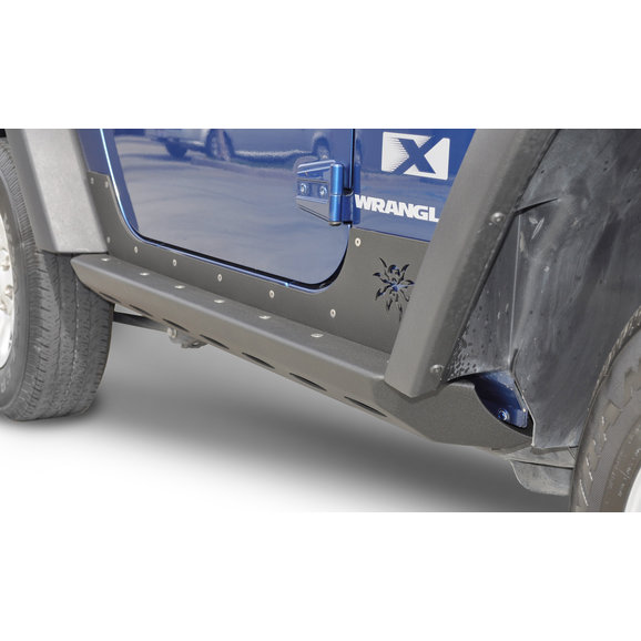 Brawler Rockers are designed to handle a serious beating! They not only provide unmatched rocker protection, but they also provide a super strong pivot point which can help you to maneuver through tight obstacles. The boat side design will allow the Jeep to slide off of rocks and back onto the center of the trail. The protruding rub rail keeps vertical obstructions such as trees and rock walls a safe distance from the Jeep's doors and other vulnerable body parts. And when you need to change a tire or perform an extraction, the Brawler Rocker provides a strong, convenient lifting point for your Hi-Lift jack.
