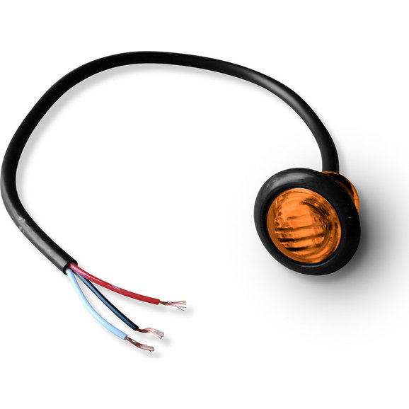 3/4" round, Amber lens LED lamp for use as a combination turn signal and running lamp, for use with Poison Spyder Customs DeFenders, Tube Fenders, Crusher Flares, or anywhere you'd like to mount them by drilling a 3/4" hole in a flat panel. This is a 3-WIRE assembly, meaning it can be used as both a turn signal AND a marker lamp simultaneously. It can also be used as only a marker lamp (or only a turn signal) by using two wires and leaving the third wire unused. These high quality LED lamps are DOT-approved for use on your vehicle. Includes pigtail harness and mounting grommet. Sold each (select a quantity of 2 if you need a pair).