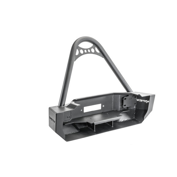 The Snyper Scope Front Bumper Stubby style is an off-road winch bumper for Jeep JK. It is a fully welded design made of 7 gauge, one piece fully welded steel. Pre-drilled to accept up to a 10.25" tall winch. It features 1" thick shackle mounts and a Snyper logo laser-cut on the ends. This frame mounted bumper comes in a black textured powder coat finish.