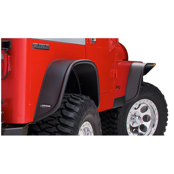 Add 6" of tire coverage to protect from rocks and debris with these aggressive rock crawler looking fender flares from Bushwacker. Made from 100% UV protected Dura-Flex® 2000 TPO material these install easily with minimum drilling or cutting. These include a integrated LED DOT-compliant marker light on the front flares. The OEM matte black textured finish looks sharp. Made in the USA with a Limited Lifetime Warranty.