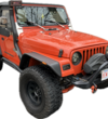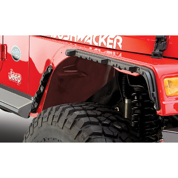Bushwacker's new "Flat Fender" flares for Jeep TJ Wranglers set the standard for flat-fenders in style, function, and durability. The newly designed flare offers more clearance for taller, wider tires by eliminating the factory flare's overhang and extending a full six inches from the body. Made of extreme-duty TPO plastic that's more durable and flexible than ABS, the flares are guaranteed not to sag like urethane flares, or chalk like factory flares. Plus, they're the only flat-fender flares to include a DOT side marker light and reflector, keeping your Jeep street legal. And the fit and finish is outstanding, making them the best looking and best designed flares on the market. If you've got a Jeep TJ, check out Bushwacker's new flares today!