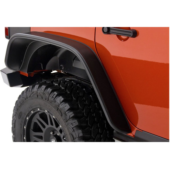 Bushwacker's new Flat Fender flares for Jeep JK Wranglers set the standard for flat-fenders in style, function, and durability. The newly designed flare offers more clearance for taller, wider tires by eliminating the factory flare's overhang and extending from the body. Made of extreme-duty TPO plastic that's more durable and flexible than ABS, the flares are guaranteed not to sag like urethane flares, or chalk like factory flares. Plus, they're the only flat-fender flares to include a DOT side marker light and reflector, keeping your Jeep street legal. And the fit and finish are outstanding, making them the best looking and best-designed flares on the market. If you have a Jeep JK, check out Bushwacker's new flares today!