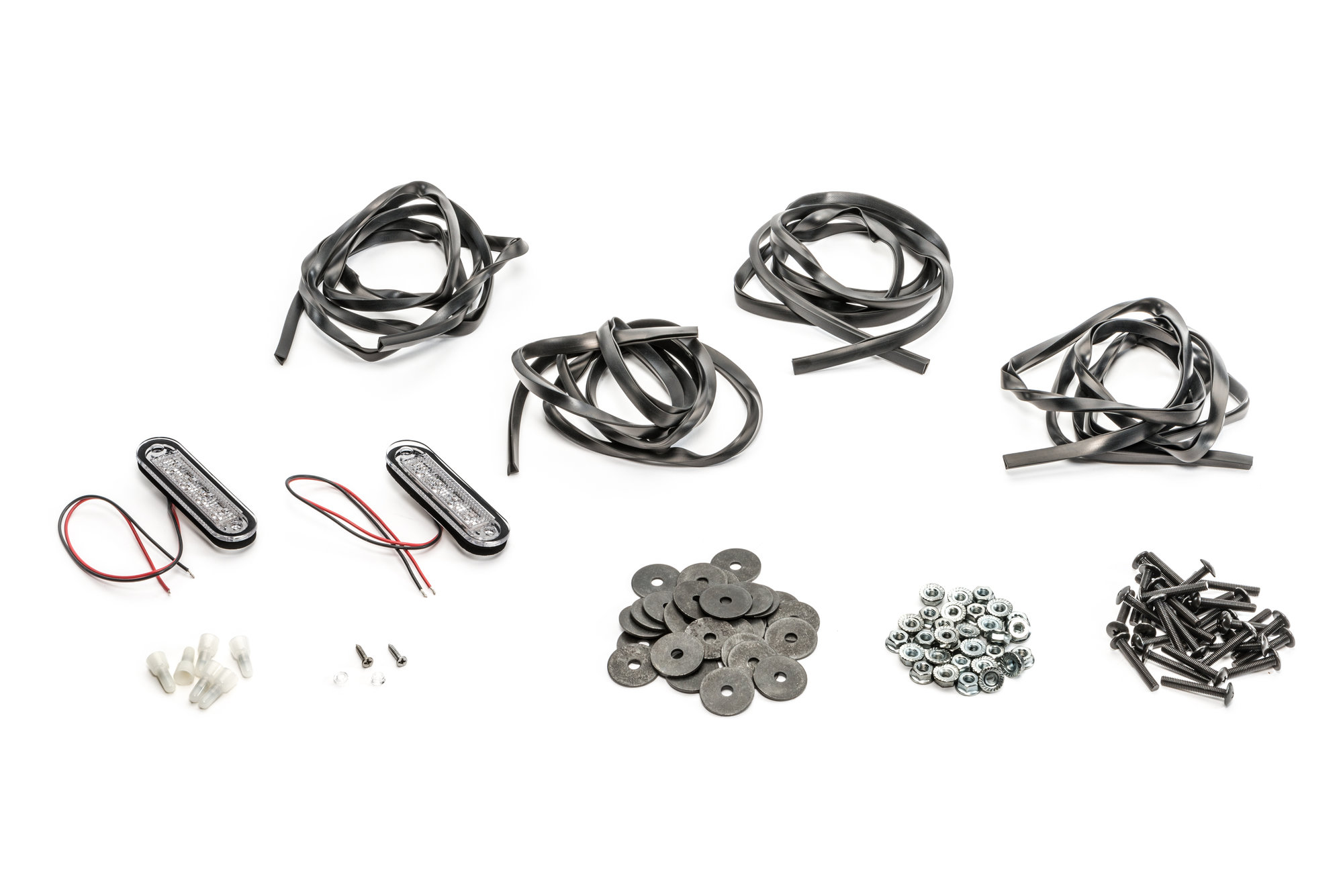 Incredible value for the money with a quick and easy installation that uses existing factory mounting holes. The TAG Flat Fender Style Flares are made from a tough heavy duty proguard plastic that will not chalk, warp or crack under normal use and comes in a textured finish. No drilling or cutting for installation and comes complete with LED side marker light. These Flat Fender Style Flares provide clearance for your larger tires and gives you an additional 5.5" of tire coverage.