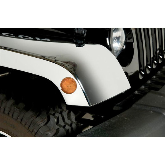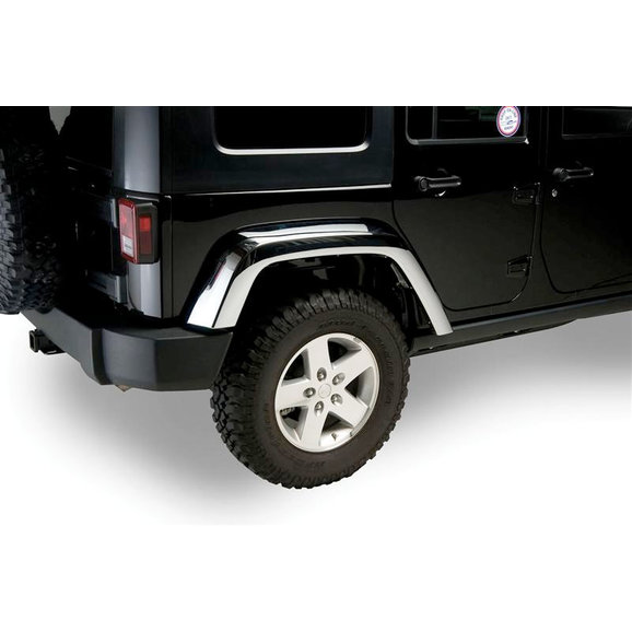 Dramatically enhances the looks of your Wrangler JK's factory fender flares. Installs easily with peel and stick 3M Tape. No cutting or drilling necessary. Made from chrome plated ABS. This durable material will withstand the rigors of the elements.