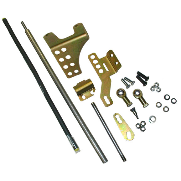 Also provides a clean shifting mechanism for conversion transmissions being adapted to the Jeep transfer cases. Eliminate shifter kick-outs that can result in transfer case damage by replacing problematic factory linkages. Note: This kit will require some mechanical ability, an understanding of the principles of leverage, and the skill and ability to bend the shifter cane (typically using heat) to suit the particular Jeep's need.