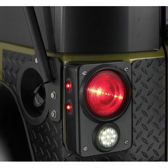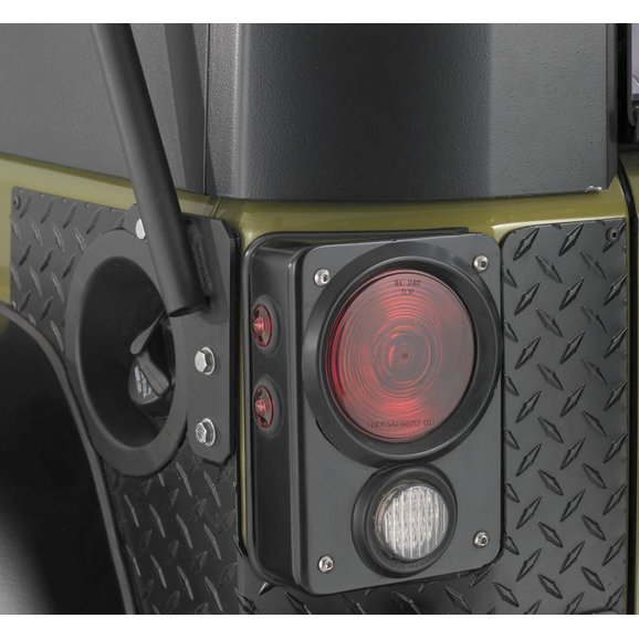 JK Steel Tail Lights are a great replacement for your factory tail lights. Almost every trail-use Wrangler has seen a broken plastic tail light at one time or another. This great solution will provide you with a strong steel replacement that accepts standard grommet-mounted tail lights and/or reverse lights.