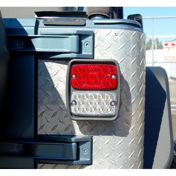Warrior's Steel LED Tail Lights for the Jeep CJ Wrangler feature a rugged, off road-ready tail light housing constructed using 11-gauge steel. Strong and durable, these Steel LED Tail Lights are 100% designed, manufactured, and welded in the USA. The Warrior Steel LED Tail Lights feature a license plate LED light and sidemarker LED lights for an all-inclusive tail light solution without the need for additional lighting. Mounts to the factory mounting locations to provide a direct bolt-on replacement for existing OEM Tail Lights or OEM Style aftermarket plastic LED Tail Lights. Textured, black powder-coated finish. Includes all hardware and LED lights required for installation. No cutting or drilling required. Sold as pair.