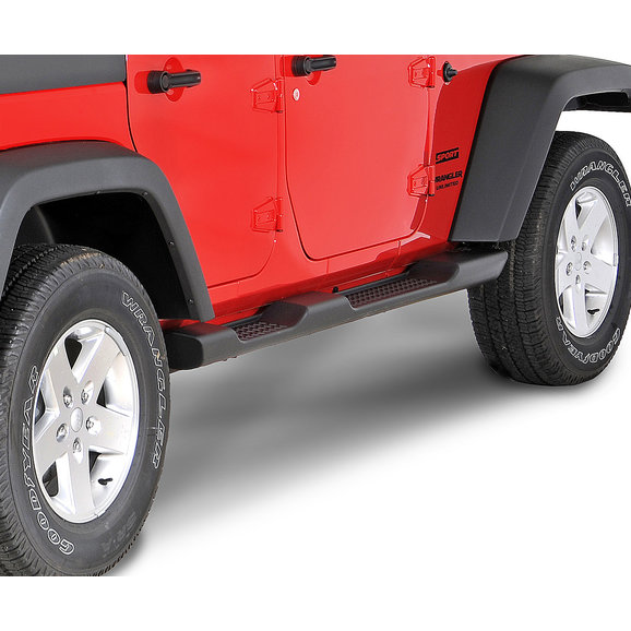 These Molded Side Steps are the production steps included on Sahara and optional on X models. Made from durable black plastic with steel substructures, they provide stepping surface for easier entry and exit on Wrangler. Please note: Will not fit 2018+ Jeep Wrangler JL models.