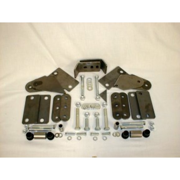 The bracketry on the shackle reversal system is manufactured from .250" thick steel, cut with CNC laser, for .004 of accuracy. All pieces of the Jeep® shackle reversal system are precision bent to exact tolerances and assembled in jigs, and then M.I.G. welded. All hardware is grade 5. Complete instructions with several pictures are included.