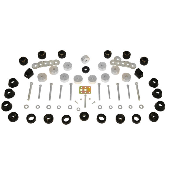 M.O.R.E. "Body Lift Systems" come with everything the standard body lift comes with in addition to new polyurethane body mounts. You'll save time and money when you install the System under your rig. Replace the old worn out rubber body mounts that are on your Jeep® with new Polyurethane. These specially formulated Polyurethane bushings are soft enough to allow flex yet tough enough to withstand heavy duty abuse. They will not 'squeak" or make noise.