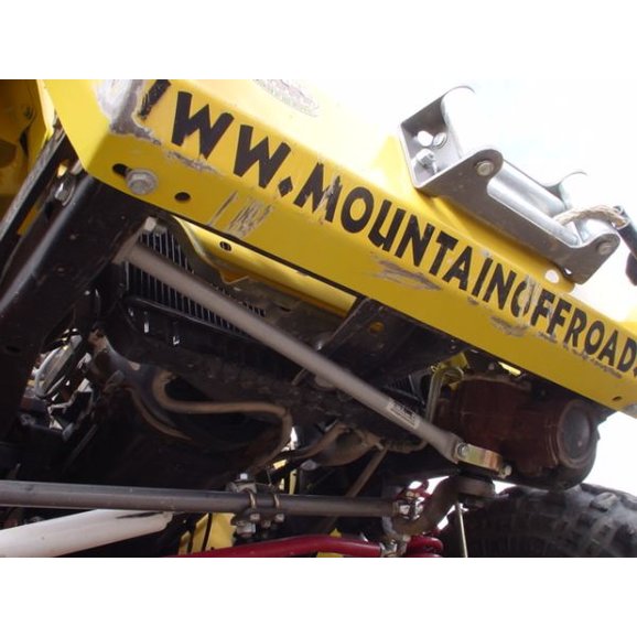 The M.O.R.E. Steering Brace for Jeep® Wrangler is powder coated and the clamp is zinc plated gold. All mounting hardware is included, and the steering box brace is just a simple bolt-on design. No drilling or mods are required (for most applications). This brace ties your power steering box to the passenger frame rail to prevent it from being torn off due to added stress from larger tires or a front locker. This brace is inexpensive insurance against costly damage on the trail.