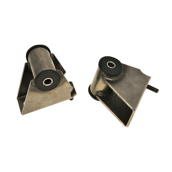 Now that rock crawling has become the favorite past time for Jeepers and we are putting our Jeeps in places that they were never designed to go, the stresses on the stock Jeep motor mounts and engine block are tremendous. With deep gearing, big tires, lockers, and mega torque, the stock mounts can be torn apart in no time at all. They bolt into stock holes in the frame and engine mounts. Black polyurethane bushings insulate from steel to steel contact. These motor mounts feature a 1" rise to accommodate body lifts and belly up skid plates to re-correct rear driveline angles.