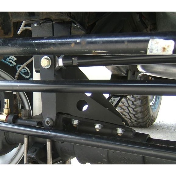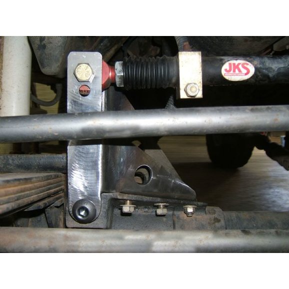 Doing a Spring Over on your YJ? This Trac Bar Bracket and Hardware is for 87-95 YJ. In some cases, you must install a 1/2" tall block between the leaf spring and axle to allow clearance between the tie rod and spring, included with the kit. All componets unpainted, or available, zinc plated tie rod & drag-link, for a slight additional fee. These will not fit TJ's, XJ's or ZJ's. Must be used with JKS Trac Bar shown below. This bracket is designed for the M.O.R.E. Steering knuckle setup.