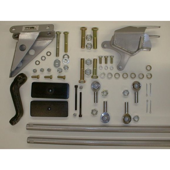 This system is the answer to your steering problems. Designed for full suspension travel, without bind. It works with stock offset wheels, or after market. Simple bolt on design, no welding required. It will work with stock leaf springs over the axle, and for you folks who choose to use up to 2.5" lift springs over the axle. It does not come with steering stabilizer (shock) mounts.