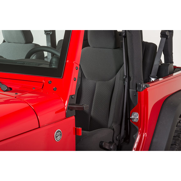 When you remove your doors on your JK Wrangler you also remove your mirror which is mounted to the door. Don't worry - we've got a solution! Our JK Mirror Bracket mounts on the side of your Jeep JK and lets you reuse the factory mirror. Easy to install, and powder coated black for durability and visual appeal, this mirror bracket is a must-have for any serious off-roader.