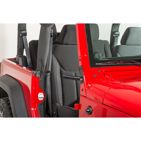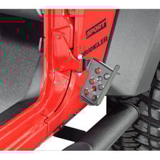 When you remove your doors on your JK Wrangler you also remove your mirror which is mounted to the door. Don't worry - we've got a solution! Our JK Mirror Bracket mounts on the side of your Jeep JK and lets you reuse the factory mirror. Easy to install, and powder coated black for durability and visual appeal, this mirror bracket is a must-have for any serious off-roader.