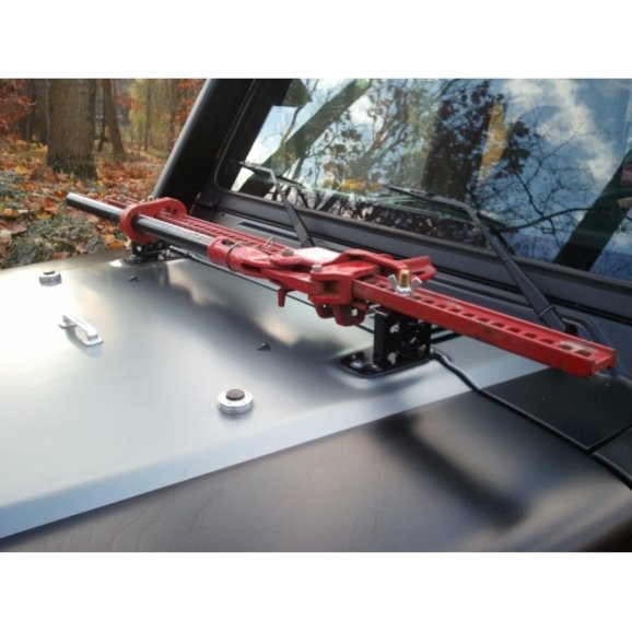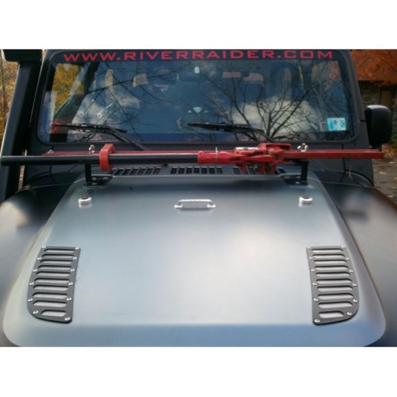 Looking for a secure place to mount your hi lift jack on your TJ? River Raider Off Road now offers a new hood mount for your 48" or 60" hi lift jack. The mounts come powder coated black. Includes Grade 8 hardware and wingnuts for a simple, bolt on installation!