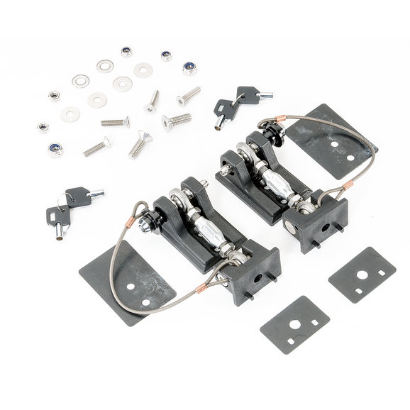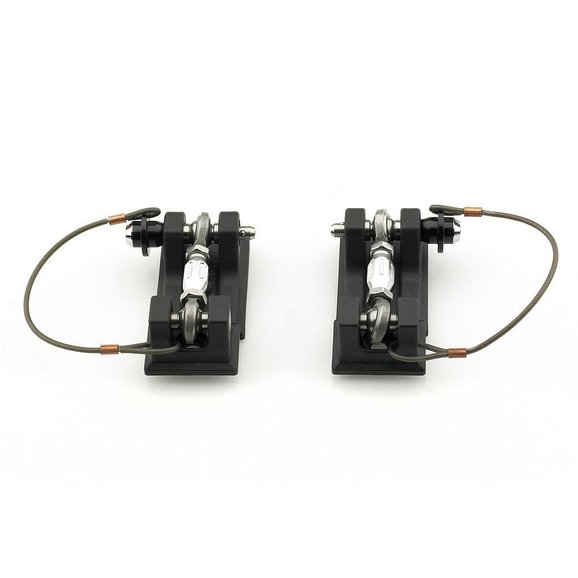 The new locking Hood Hold Down system from DV8 Offroad gives you the in ultimate security and protection with a stylish look for your Jeep. The patented design features an adjustable turnbuckle center piece with stainless steel heim joints at either end along with reinforced body mounts for extra strength and durability. The system securely locks in place with stainless steel locking pins that are tethered to the mounts with UV resistant PVC coated stainless steel cable. If you're looking to make an upgrade to your Wrangler that adds function, style and security in one package, choose the DV8 Offroad locking Hood Hold Down system.
