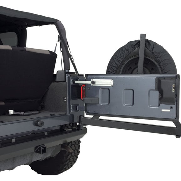 Keep your rear tailgate door open while loading your Jeep® with the new Tailgate Stop from Rampage Products. This billet aluminum door stop incorporates a sliding arm that locks into place keeping your tailgate door open even on the most severe slopes. Load your Jeep® with ease! Some drilling required to install on the inside of our tailgate.