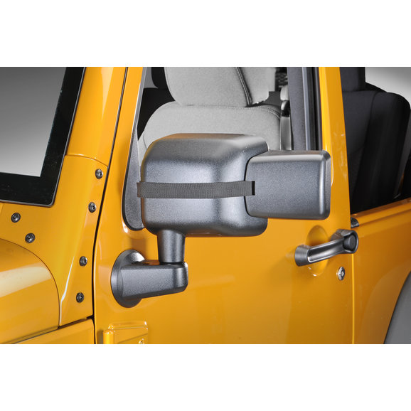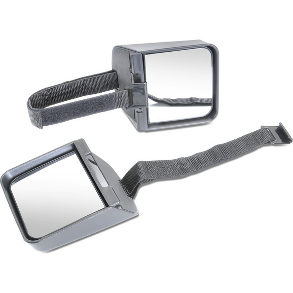 These New Rampage Products Mirror Extensions for Towing are just in time for travel and tow season. These strap on to the factory mirrors to add another 4" of mirror and increase length of rear view for towing. Factory match finish-Black. Custom made and fit for JK Wrangler and late model Liberty.