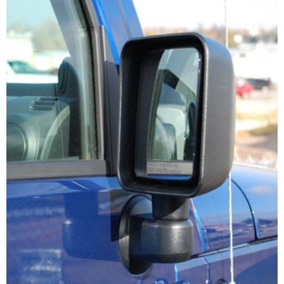 Replace your old worn out side mirrors with these new factory style replacement mirrors from HighRock 4x4™. Made of heavy-duty plastic. Sold in Pairs. Will not work with any mirror movers, works with OEM Full and Half Doors Only.