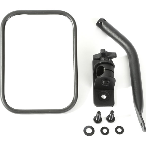 Love taking your doors off, but hate the hassle of swapping out your mirrors? Have mirror relocation brackets, but dislike the limited visibility they offer with doors on? This pair of quick release textured black rectangular side mirrors offer the perfect solution for your Wrangler. How quick can you remove or install these stylish quick release mirrors? In a word, quick! The mirrors mount to a bolt-on bracket and are secured with a locking knob that allows for easy installation and removal. The long adjustable arms give you great visibility with your doors off or on. Fits left and right sides.