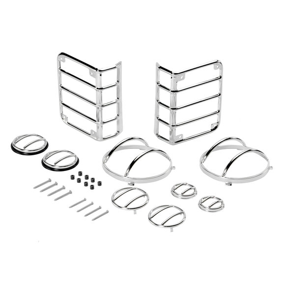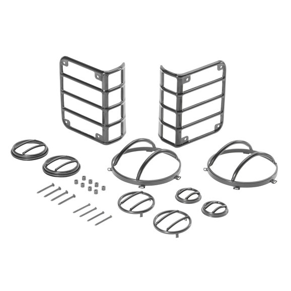 Get that hot look by adding front and rear Euro-guards to your Jeep! This exciting package offers the complete Euro-guard kit custom designed for your Jeep. Each Euro-Guard easily installs to factory mounting points providing a great look and protection from low hanging trail obstacles. Each kit includes headlight, parking light, side marker light, factory fog light and rear tail light Euro-Guards. This is the complete kit and will fit both 2 and four door models with factory installed bumper mounted fog lamps. Will not fit on Sahara Model.