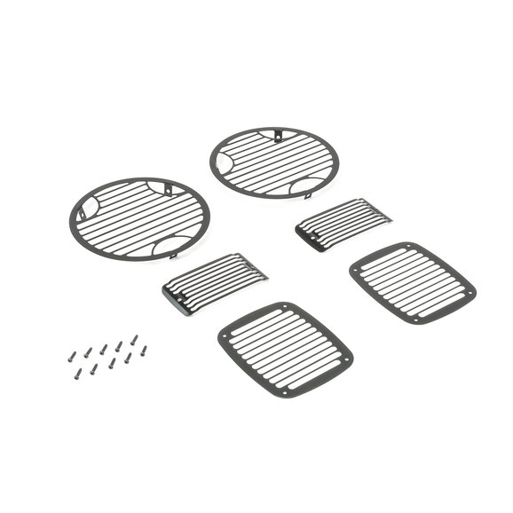 All popular styles of light guards. A must for serious off-roaders & street cruisers. These rugged 6 piece sets protect headlights, turn signals and taillights from stones, brush and debris. Each installs easily with a screwdriver, no drilling is required.