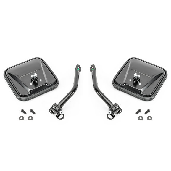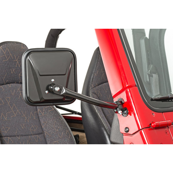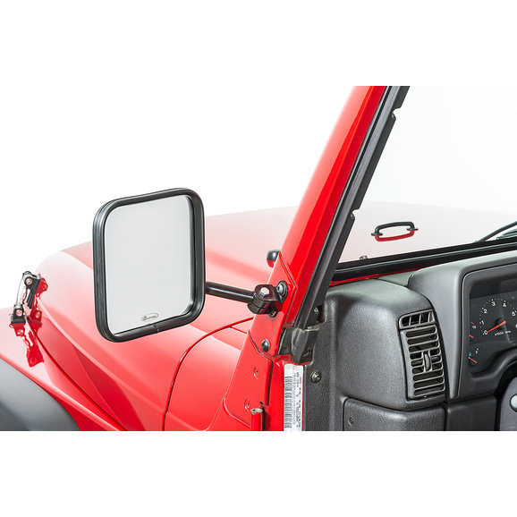 Economically priced, the Quadratec Mirror Movers eliminate the mirror dilemma when cruising your Wrangler with the factory doors removed. Quadratec Mirror Movers for '87-'06 Wranglers provide full time "A" pillar mounted mirrors assemblies for convenience, safety and pleasure to the "doors off" driving experience. These kits are also an excellent choice when aftermarket tubular doors and cloth door assemblies are in place. Kits feature steel construction with durable black powder coat finish with CJ style square mirror heads. Includes Quadratec's once piece billet aluminum mirror bushings that hold mirror arms firmly in place without slipping. Sold in pairs.