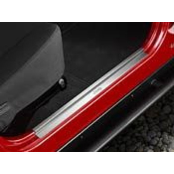 Door Sill Guards help protect the interior door sills from scratches. Available in brushed stainless steel and feature vehicle logo. Set of two or four, depending on vehicle application.