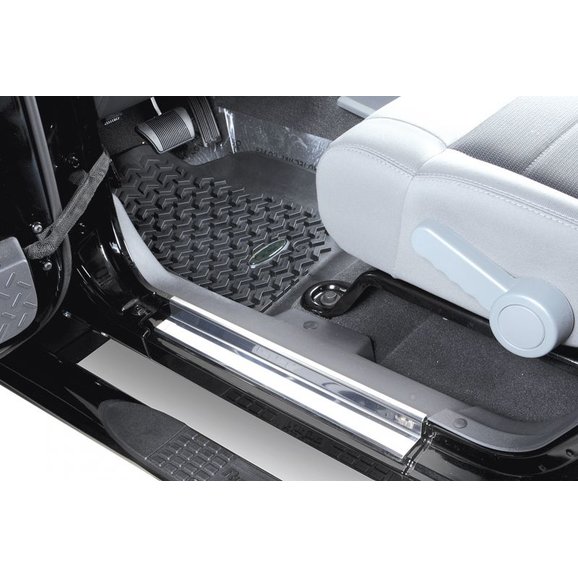 A must for all Jeep® vehicles. Rugged Stainless Steel or Black Powder-Coated Entry Guards not only cover up scratched door openings but protect against further problems. Great-looking and functional too. Easy installation with no drilling. Does not show with doors closed.