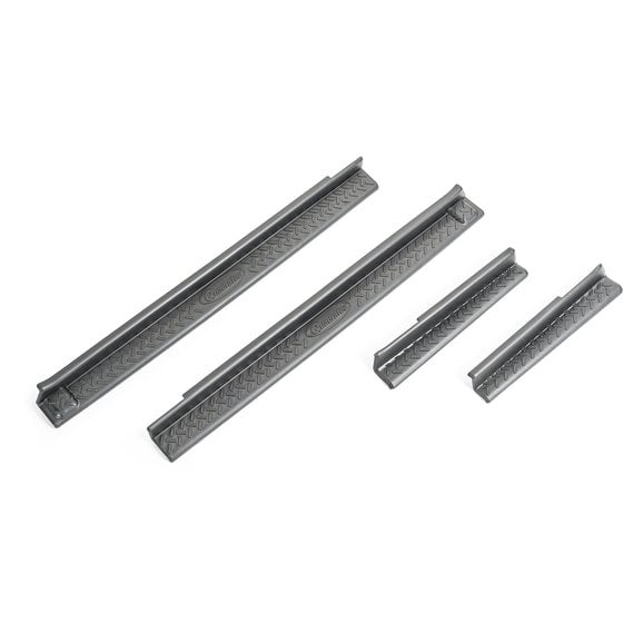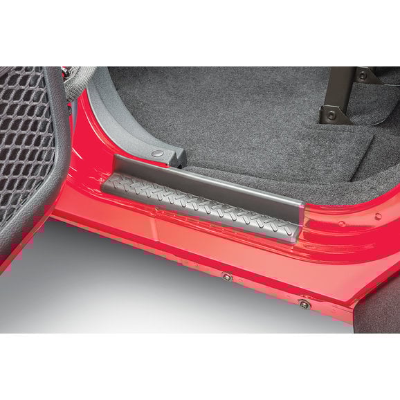 Prevent paint scuffs and chips to your lower door sills or cover up any existing damage. Our injection molded entry guards provide a precision fit and installation takes just minutes. The black TPE thermo plastic elastomer) construction is virtually indestructible to last a lifetime of abuse. The diamond tread pattern compliments all interior trim and 3M peel and stick attachment tape allows quick installation over your factory sills. Make a statement every time your door is opened and appreciate a more finished look to your interior. Backed by our Quadratec 3 Year Limited Warranty. Made in USA.