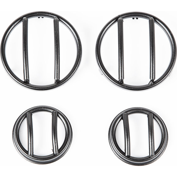 Protecting your turn signal and side marker lenses just got a whole lot easier! Now offering affordable protection and a rugged look, this turn signal and side marker guard kit is constructed of durable textured black powder coated steel, designed to last and provide a true attention to detail. The side marker light guards are a great complement to our front light euro guards. The turn signal light guards are designed to match our headlight euro guards and feature the same great style and construction. No drilling required for installation.