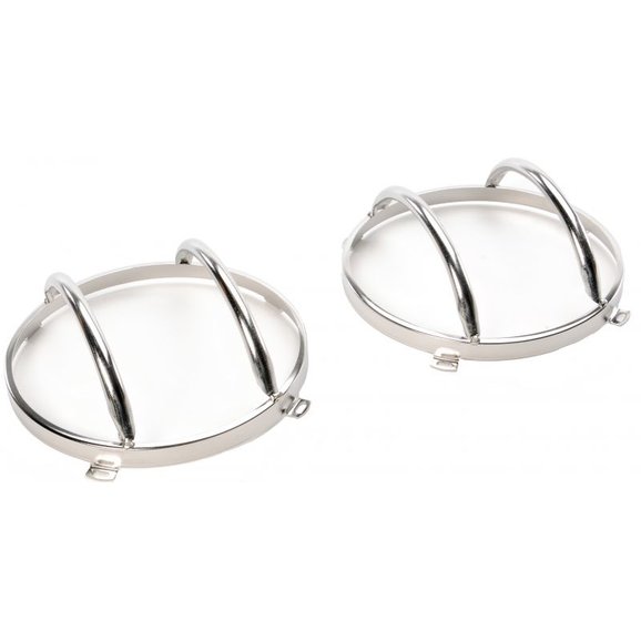 Durable cast design protects headlights from impact damage. Dramatic styling gives a clean, uncluttered look that is legal for the street & useful on the trail. 2-piece sets include covers for two headlights. Easy to install. Imported.
