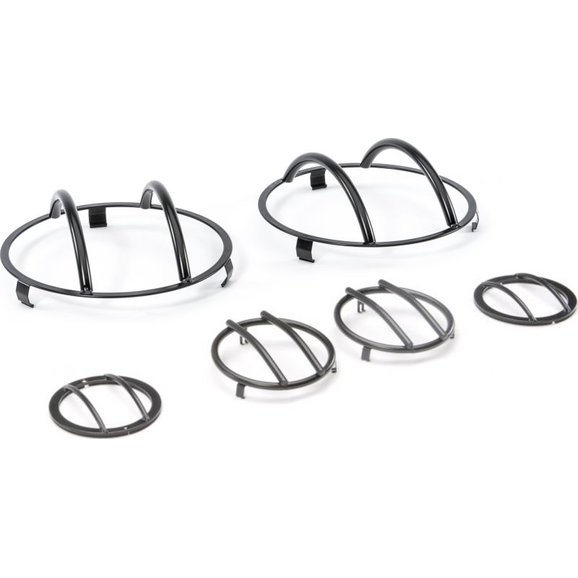 Rampage 8 PC JK Front Euroguard kits with tail light guards are designed for a hassle-free installation. The Headlight guards feature a Rampage exclusive Clip-in Design that reduces typical install time from hours to seconds leaving you more time to enjoy your vehicle and explore trails. Round tubular design adds style and protection to Headlights, Turn signals and Side Marker lenses for everyday driving and off road use. Taillight Guards are a durable design that add style while protecting your taillights. No drilling is required which make installation a breeze. Available in Black Powdercoated steel or Marine Grade Polished Stainless Steel.