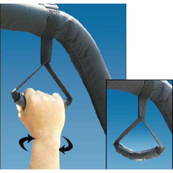 Let your passengers hang on in style while in rough terrain or just cruising around town with VDP's new fabric that is durable, yet soft to the touch. Constructed of a durable foam padded nylon webbing with a hook and loop attaching system. Can be mounted to any sport bar.