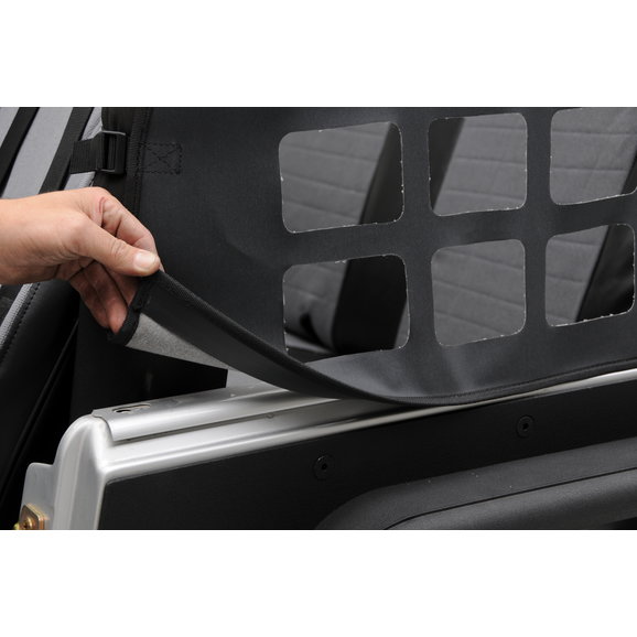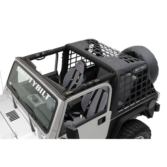 When running the hammers flat out and you want to keep your gear inside your rig then look to Smittybilt to provide you with a cargo restraint system. This newly C•RES is manufactured out of O.E. soft top material which is durable and will last you a lifetime. Each C•Res Net is designed to mount into the factory belt rain channel and strap around the roll bar for a perfect fit. With a rear zippered curtain you're not limited to the size cargo you can carry and best of all it has a 5 - Year Limited Warranty. Available in Matte Black Finish. Hard Top Models require Rear Tailgate Bar from original Soft Top.