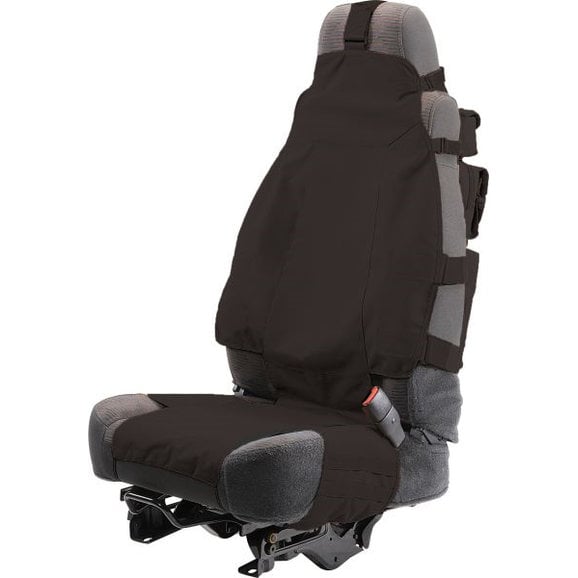 Protect your seating area and increase your storage with our NEW Cargo Seat covers! Constructed of heavy duty 600 denier polyester fabric with a special PVC liner on the seating area, these seat covers provide great protection from water, dirt and spills while giving your Jeep a great look. Each cover has been specially designed with special elastic and Velcro straps to optimize the fit on your original equipment or aftermarket seat. The back of the cover incorporates 5 multi-use pouches; one sunglass pouch with elastic tool holding loops an one Knife/multi tool pouch that can also be used for I-pod and cell phone storage. Each of these 7 pouches are easily removable and provide the needed storage every Jeep is lacking. All Cargo Seat covers can be used with side air bags on JK models. Front Cargo seat covers are sold individually and are available in two colors (Black and Tan).
