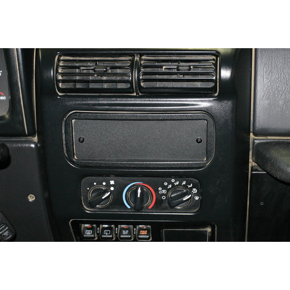 Cover the empty hole left in the dash after a stereo is removed with this cover. The plate can additionally be drilled for mounting switches. (Lights, lockers, air, etc.) Powder coated steel face plate and back tension plate. No drilling, just insert and tighten with the supplied fasteners.