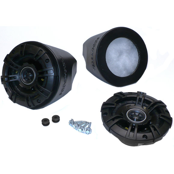 Versa-Pods accept 4 full-range speakers of your choice, or you can purchase them loaded with Kicker 4 full-range coaxial speakers rated at 50 watts rms and 88 dB efficiency. Every pair of Versa-Pods includes self-tapping screws, wire grommets, poly-fill, and installation instructions. These pods are small enough to fit just about anywhere. The unique shape of the pods and their flat bottom allow fitment in a lot of little nooks all over a vehicle's interior and can really enhance your vehicle's audio spectrum. Versa-Pods are mirror images of each other, one left' and one right'; if you can't get one of the pods to fit where you want, try the other pod and it just may work!