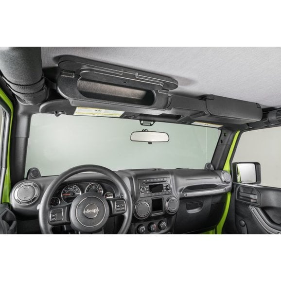 Need some extra storage place in your Wrangler or Gladiator? Want a convenient and clever spot to safely keep your sunglasses, maps, gloves and other clutter that's jamming your glove box and center console? The Quadratec Exclusive Overhead Storage Console from VDP instantly turns the area between your sport bars into usable storage space without any interference or modifications to your vehicle. Fits all 1987 and newer Wranglers and works with soft tops, hardtops, top-up, or top-down. The Overhead Storage Console has two large storage compartments with trap doors that snap shut keeping your valuables safe and sound. Our trap doors flip up and will stay open by themselves when retrieving contents. Installs quickly and easily to your vehicle with everyday hand tools. Some minor pre-assembly required. Constructed from thick and durable roto-molded TPO plastic that's both lightweight and durable. Includes steel brackets, hardware and installation instructions. Each compartment opening measures 12" wide x 3" high and is 2.75" deep. Over 325 cubic inches of storage capacity!
